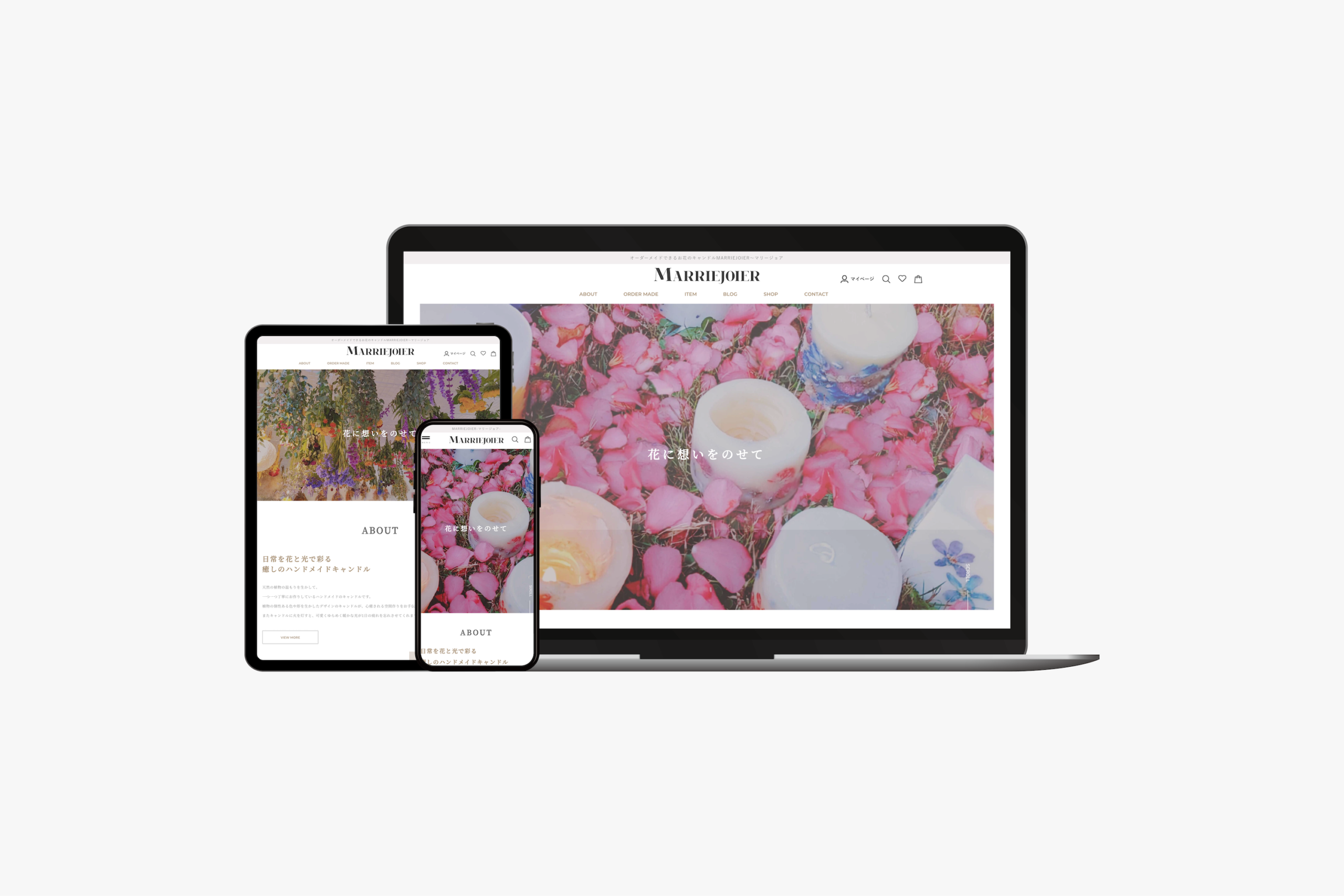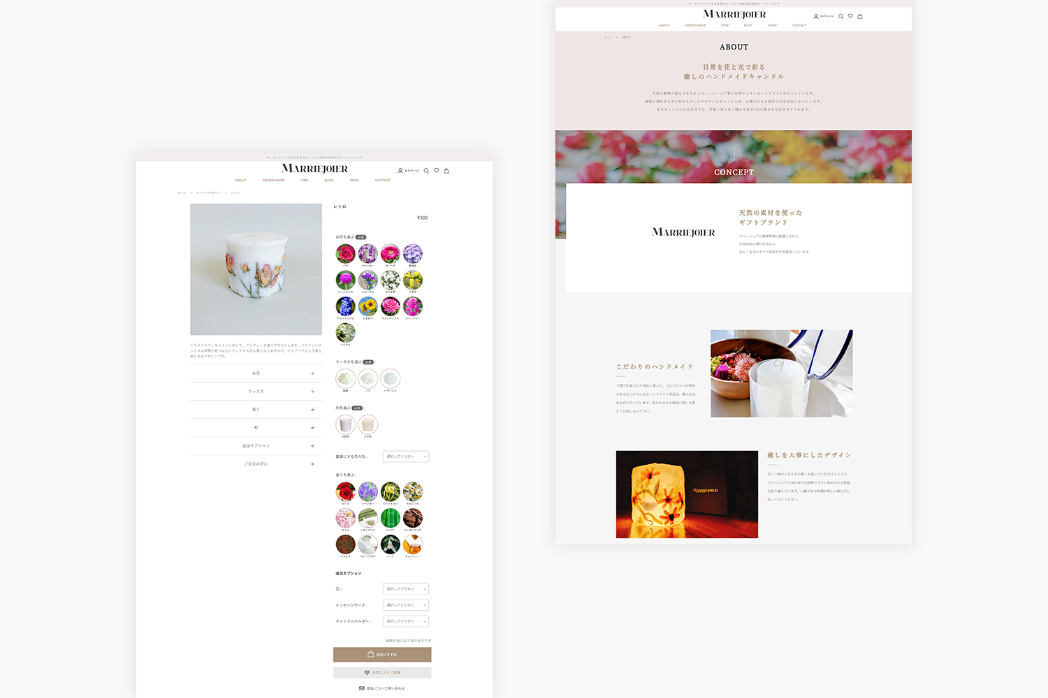 福岡県糸島市にある、お花とキャンドルのハンドメイドギフト店JoieR(ジョアール)様からの依頼で制作したオーダーキャンドルのECさいとです。